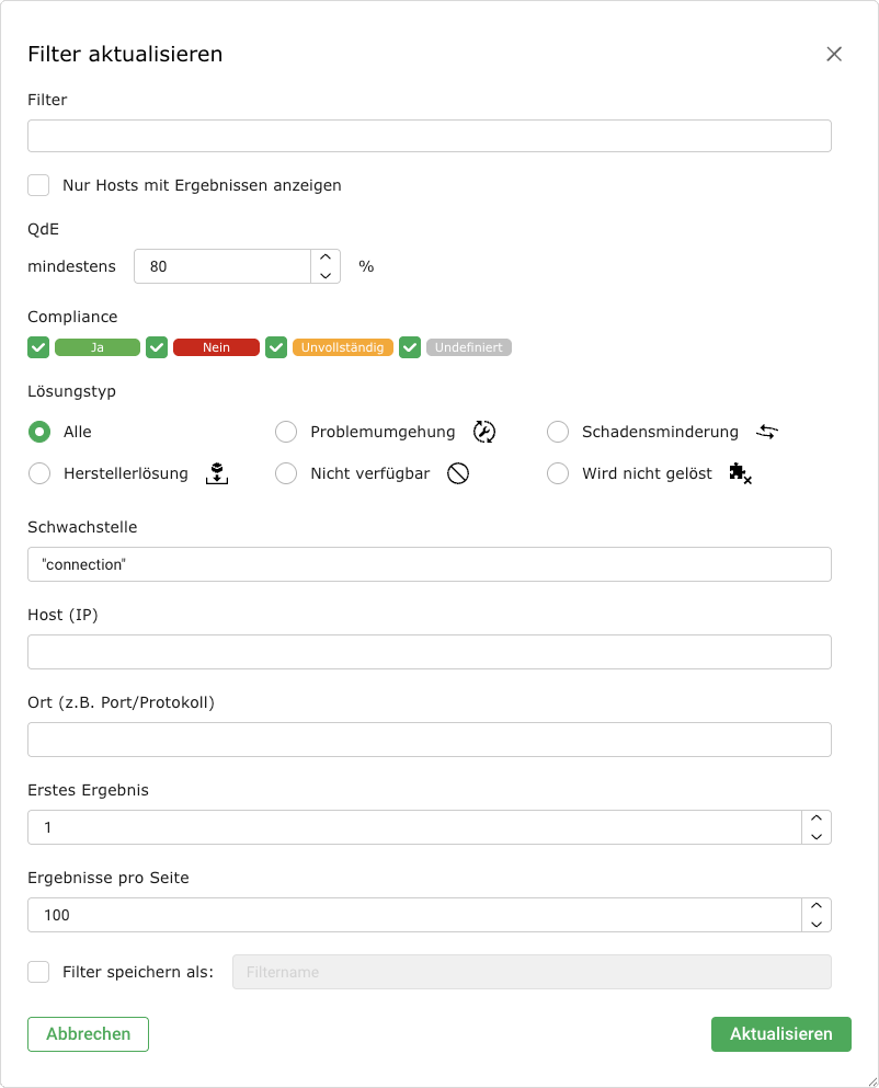 Je umfangreicher die Liste ist, desto länger dauert der Scan. Allerdings werden möglicherweise auch Dienste auf unüblichen Ports gefunden.