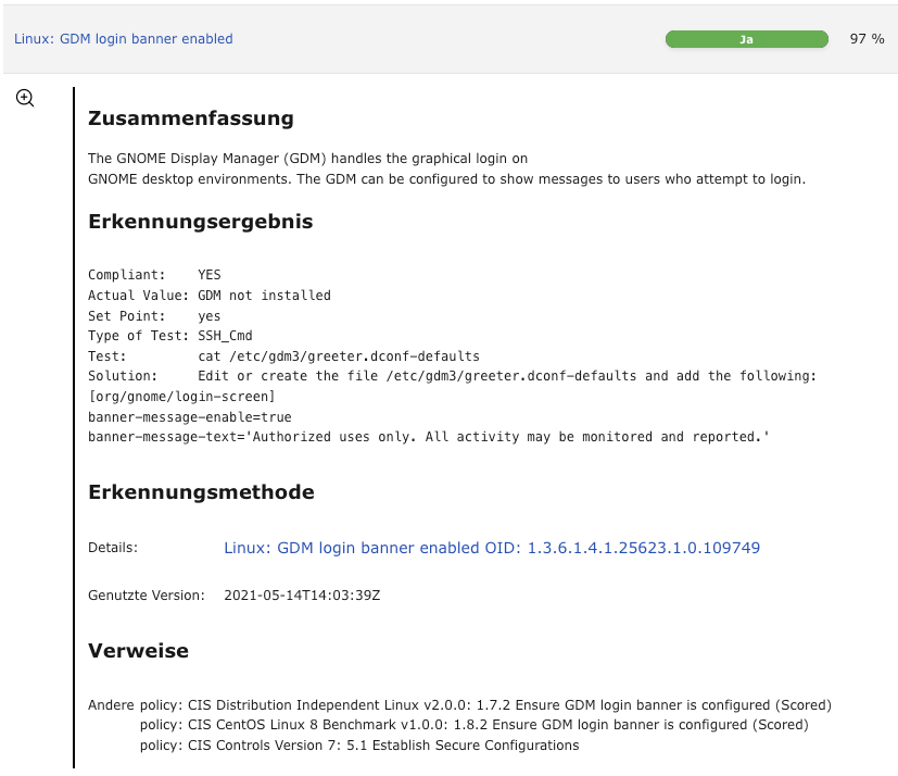 Greenbone stellt eine Richtlinie bereit, die die Compliance der Dienste mit der technischen Richtlinie „TR-03116“ prüft.