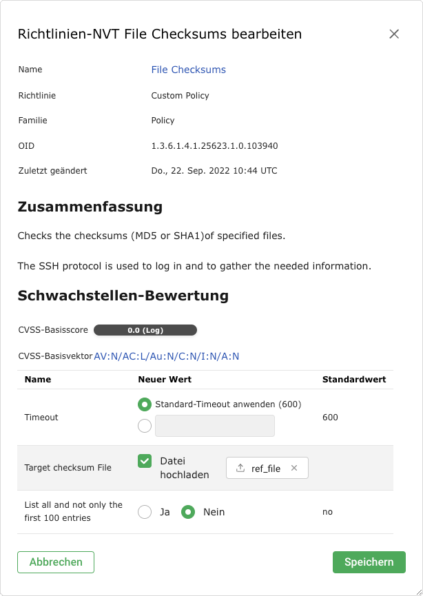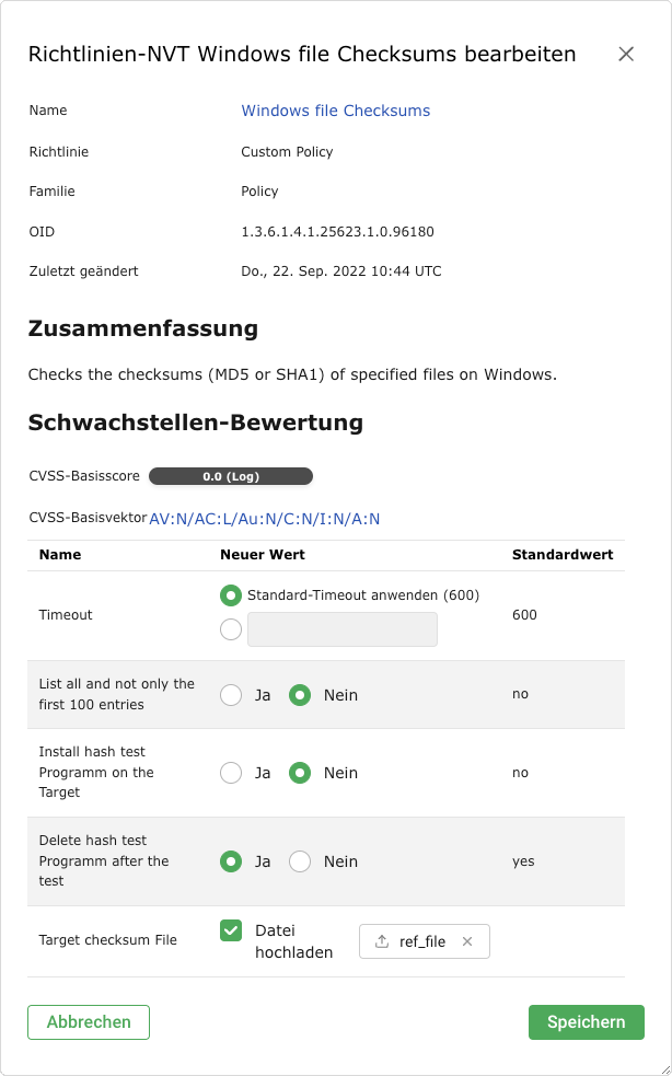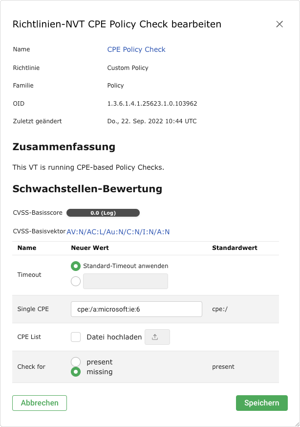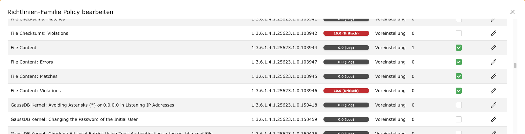 Alle Standardrichtlinien von Greenbone sind Datenobjekte, die über den Feed verteilt werden. Sie werden mit jedem Feed-Update heruntergeladen und aktualisiert.