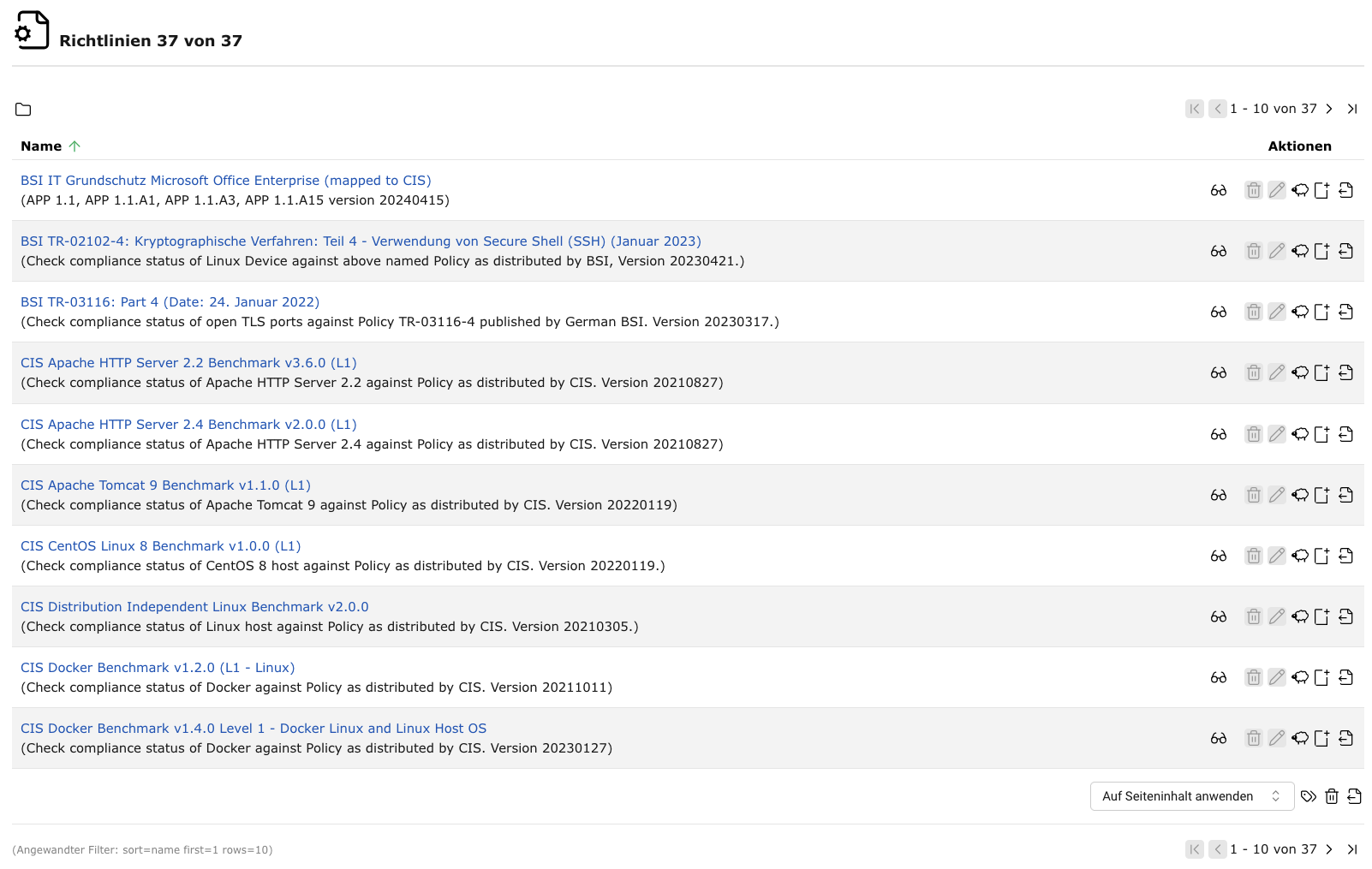 Abb. 11.6 Seite Richtlinien mit allen verfügbaren Richtlinien¶