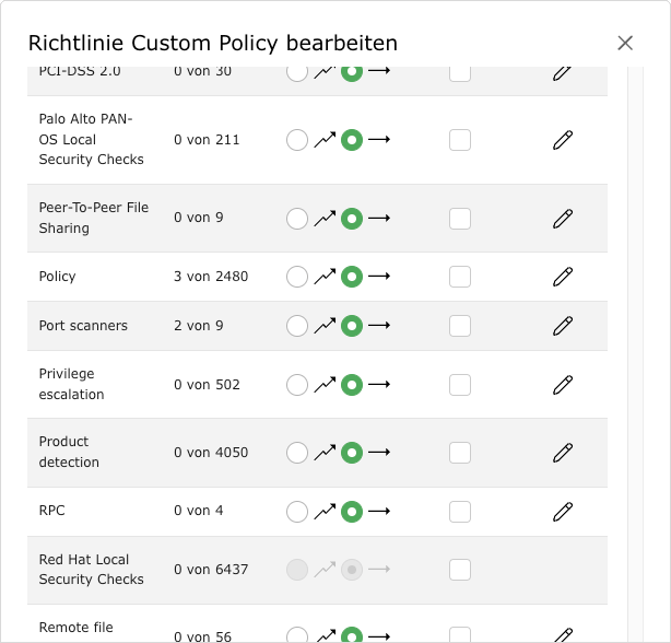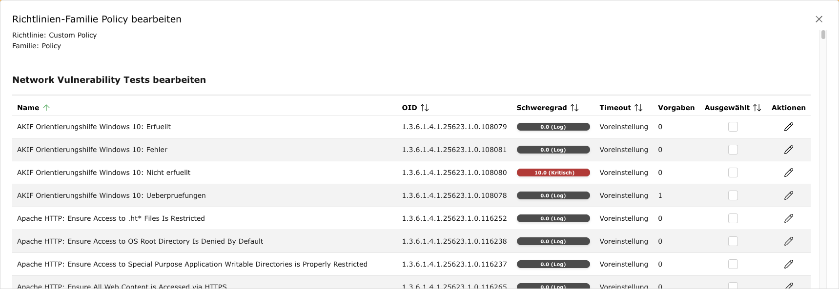Im Abschnitt Familien von Network Vulnerability Tests bearbeiten den Radiobutton