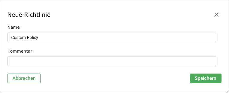 Eine neue Richtlinie kann wie folgt erstellt werden: