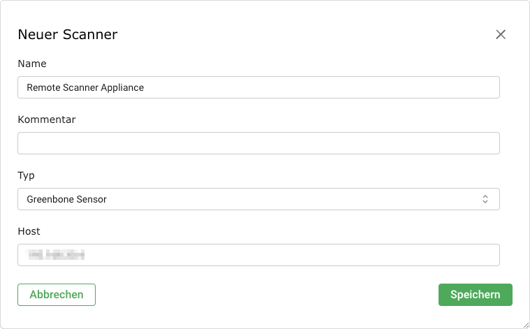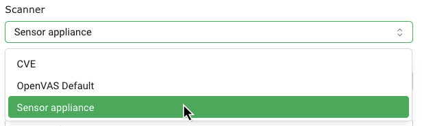 Die Wahl von Greenbone Sensor ist zwingend notwendig. Der Typ OSP-Scanner darf nicht verwendet werden.