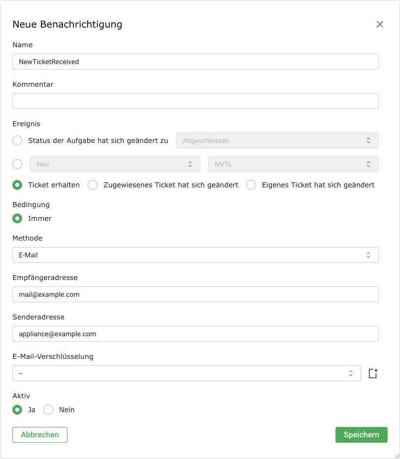 Für Aktiv den Radiobutton Ja wählen (siehe Abb. 10.3).
