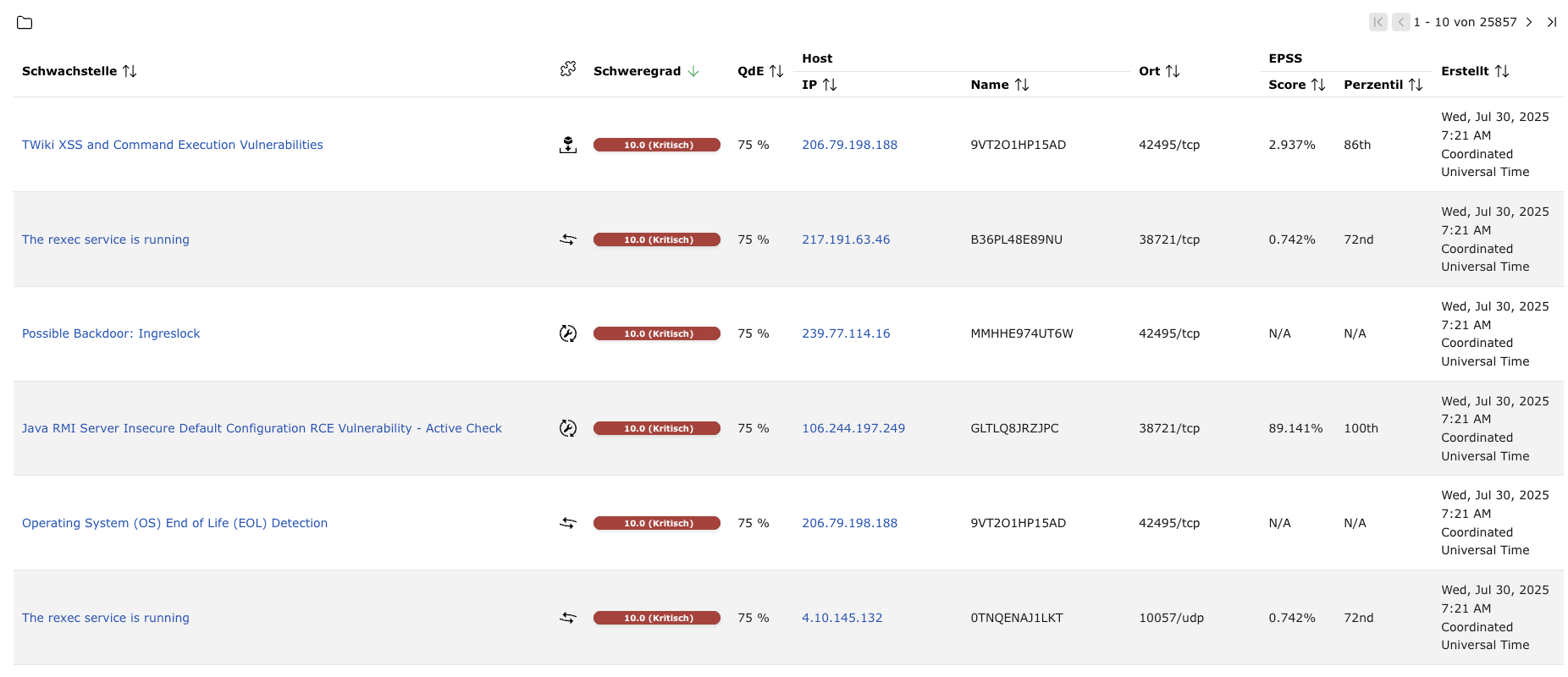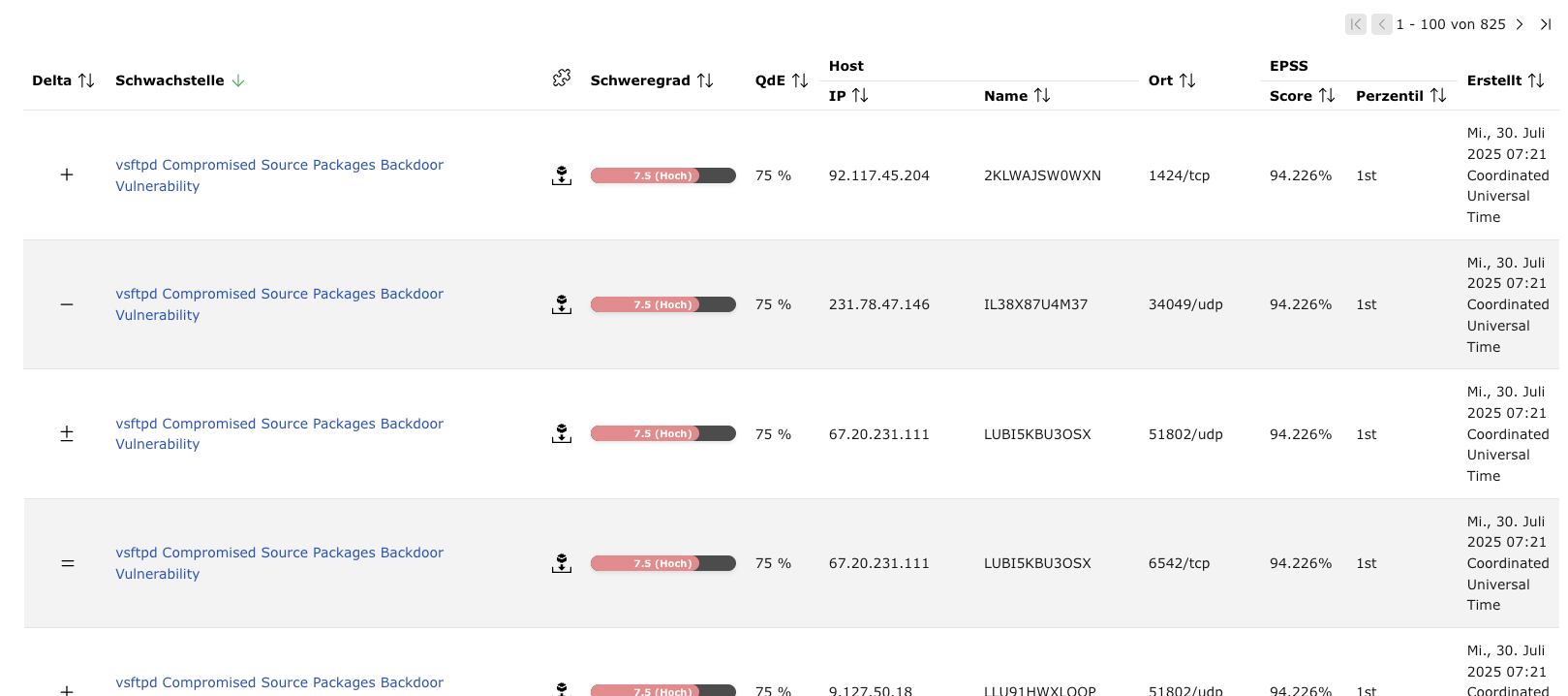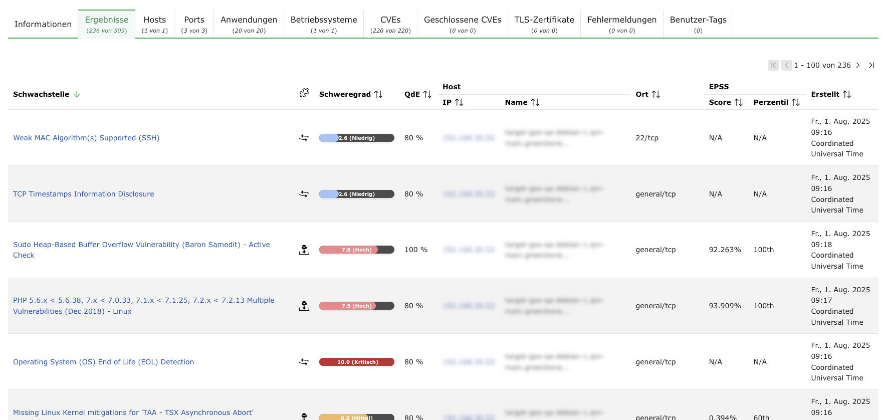 Auf ein Ergebnis in der Spalte Schwachstelle klicken.