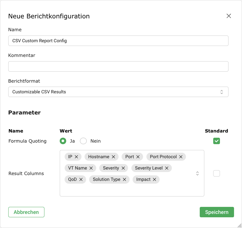 Berichtformat-Plug-in, das von Greenbone geprüft und akzeptiert wurde, bereitstellen oder besorgen.