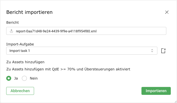 Das von der Appliance verwendete XML-Format enthält alle Daten und kann genutzt werden, um exportierte Berichte in andere Appliances zu importieren. Dazu muss eine Import-Aufgabe erstellt werden (siehe Kapitel 9.6).