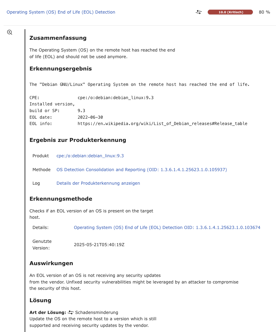 Dies ist der neue vollständige Greenbone Security Report mit allen Schwachstellen und Ergebnissen. Er kann mit einem Webbrowser oder einem HTML-Viewer geöffnet werden. Die Sprache des Berichts ist Englisch.