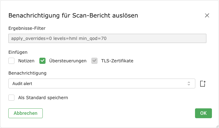 Übersteuerungen können auf unterschiedliche Arten erstellt werden. Der einfachste Weg ist das Erstellen über das entsprechende Scanergebnis in einem Bericht: