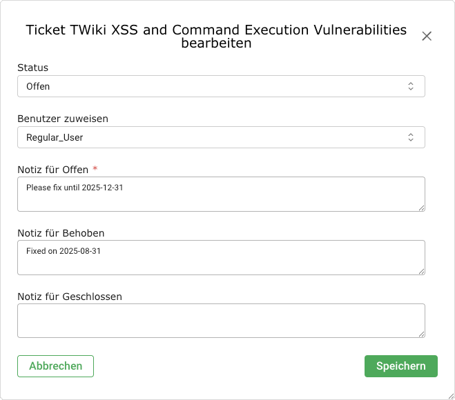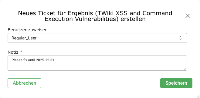 Falls die Notiz über ein Scanergebnis erstellt wird, sind einige Einstellungen bereits ausgefüllt.