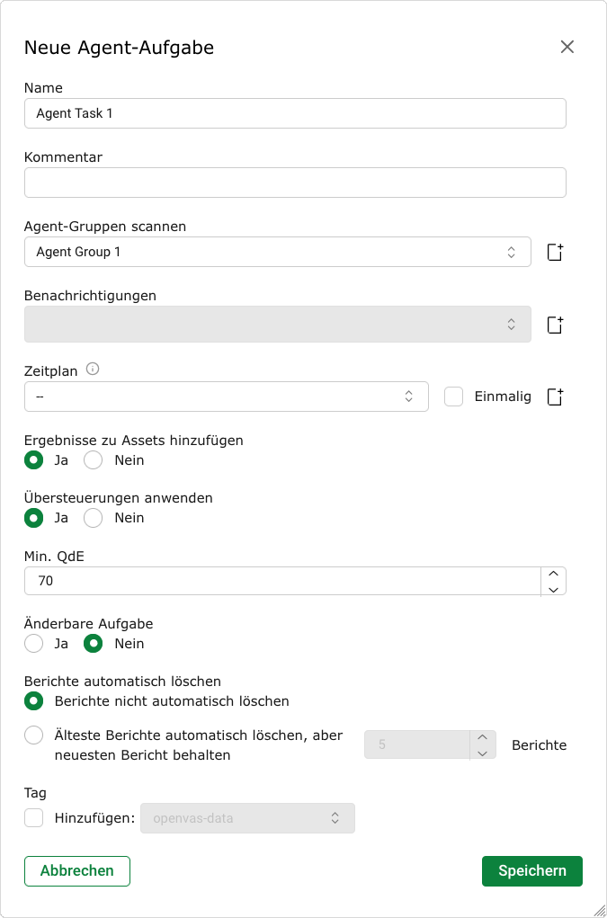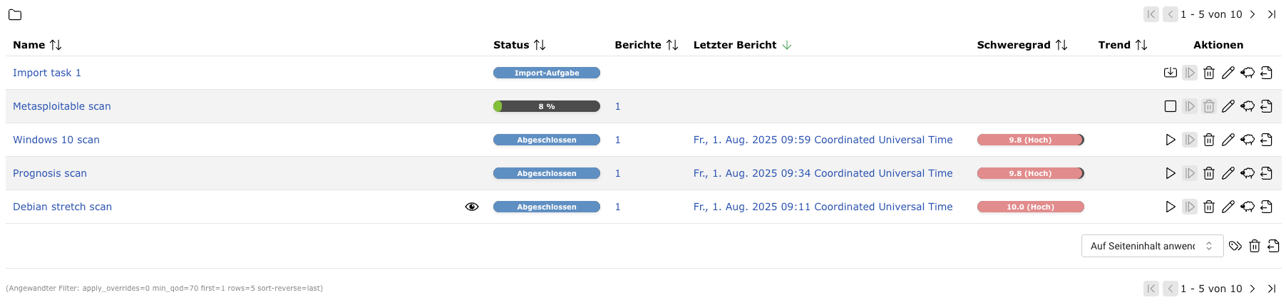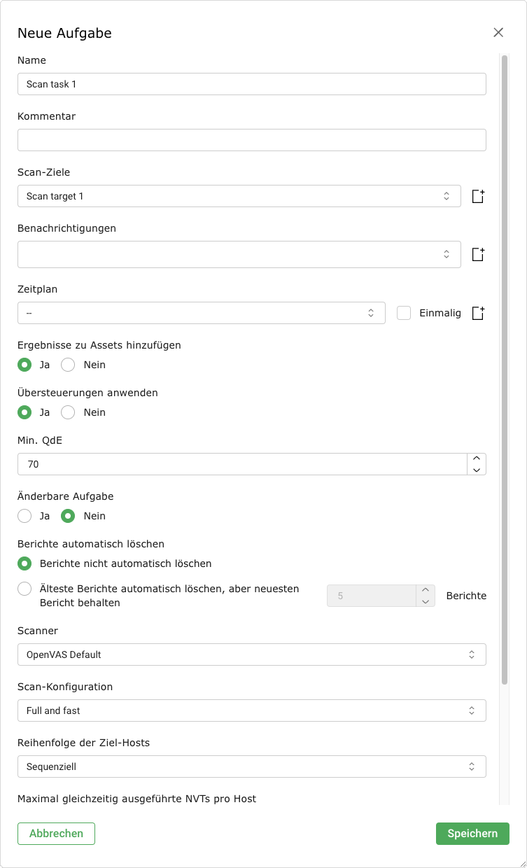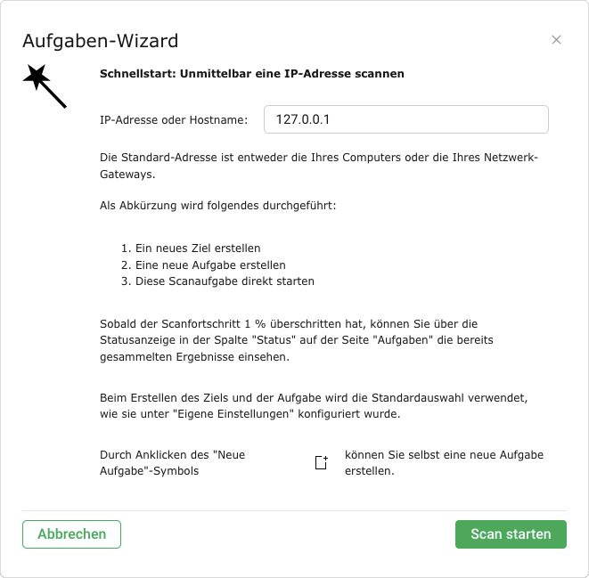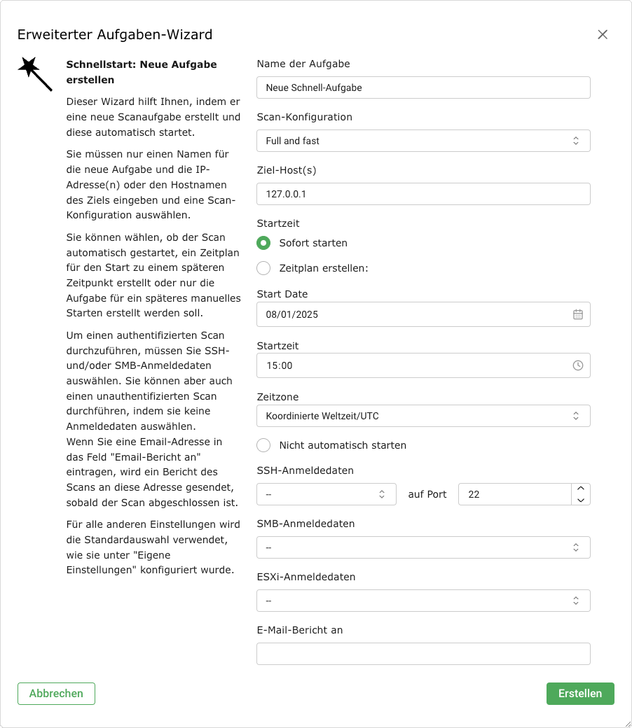 Der Aufgaben-Wizard kann einen Basisscan mit minimalem Input vom Benutzer konfigurieren und starten.