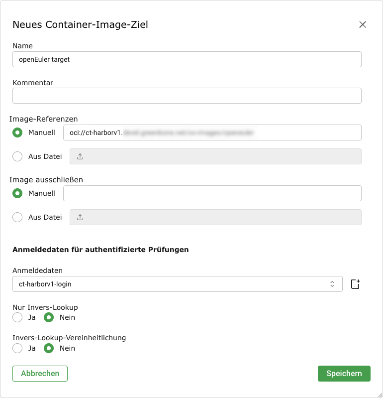 Die IP-Adresse oder der Hostname wird benötigt. In beiden Fällen ist es nötig, dass sich die Appliance mit dem System verbinden kann. Falls der Hostname verwendet wird, muss die Appliance in der Lage sein, den Namen aufzuschlüsseln.
