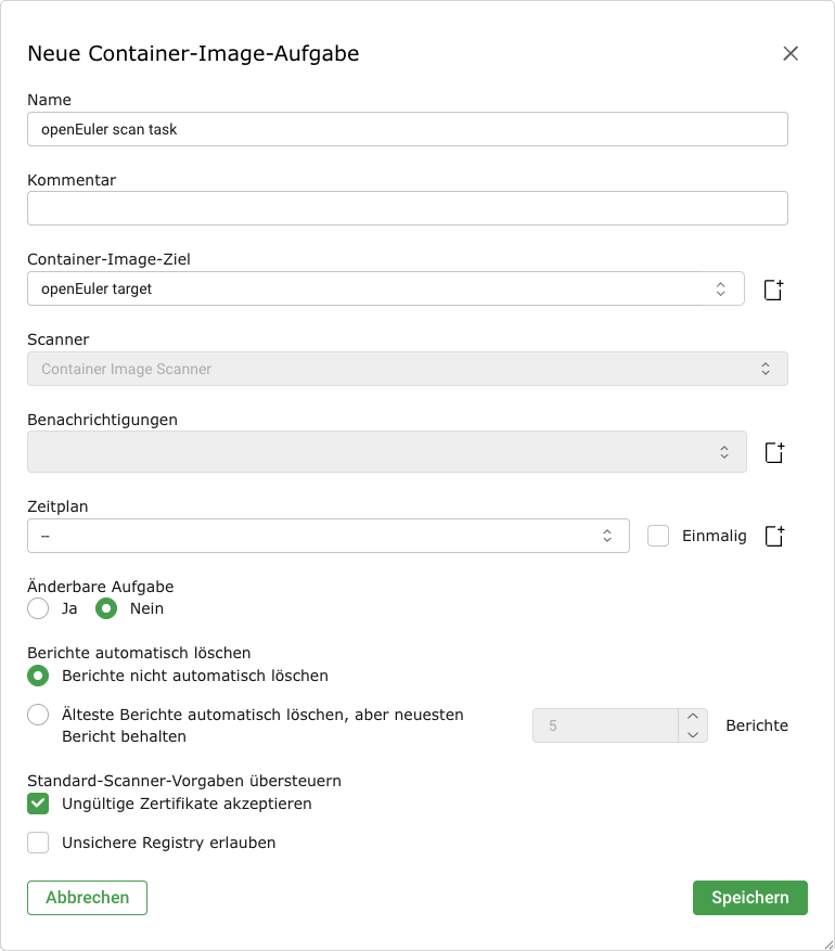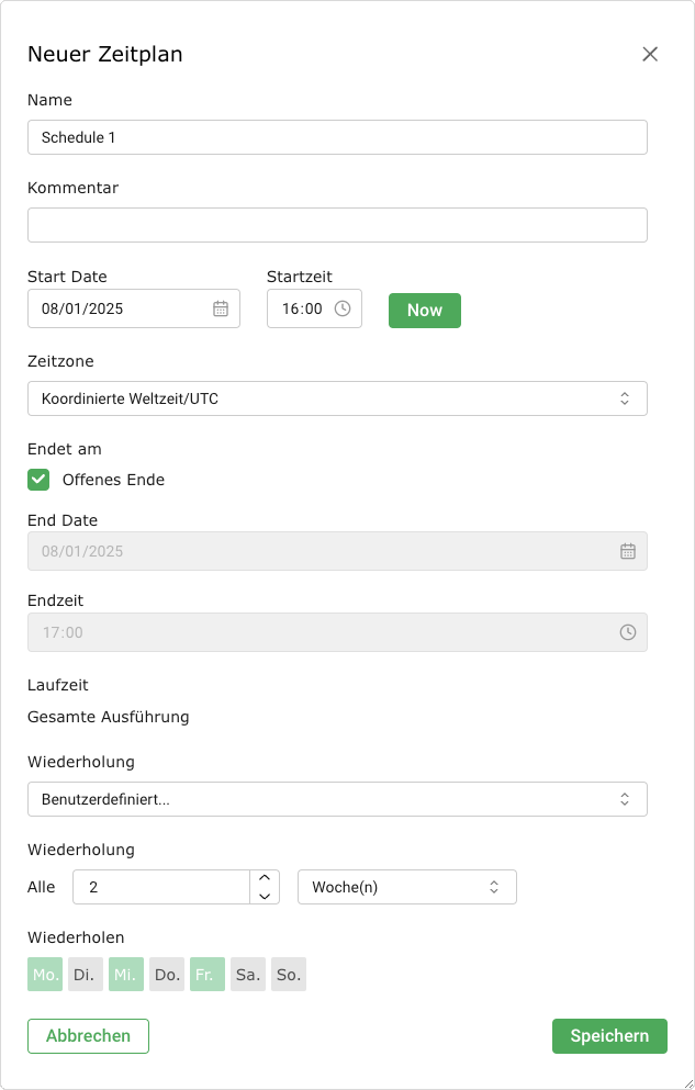 Zeitplan für die Aufgabe durch Wählen des Radiobuttons Zeitplan erstellen erstellen (siehe Kapitel 9.12).