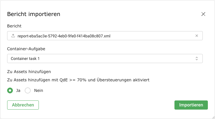 Sobald sich der Status zu Abgeschlossen ändert, ist der gesamte Bericht verfügbar. Zu jeder Zeit können Zwischenergebnisse angesehen werden (siehe Kapitel 10.2.1).