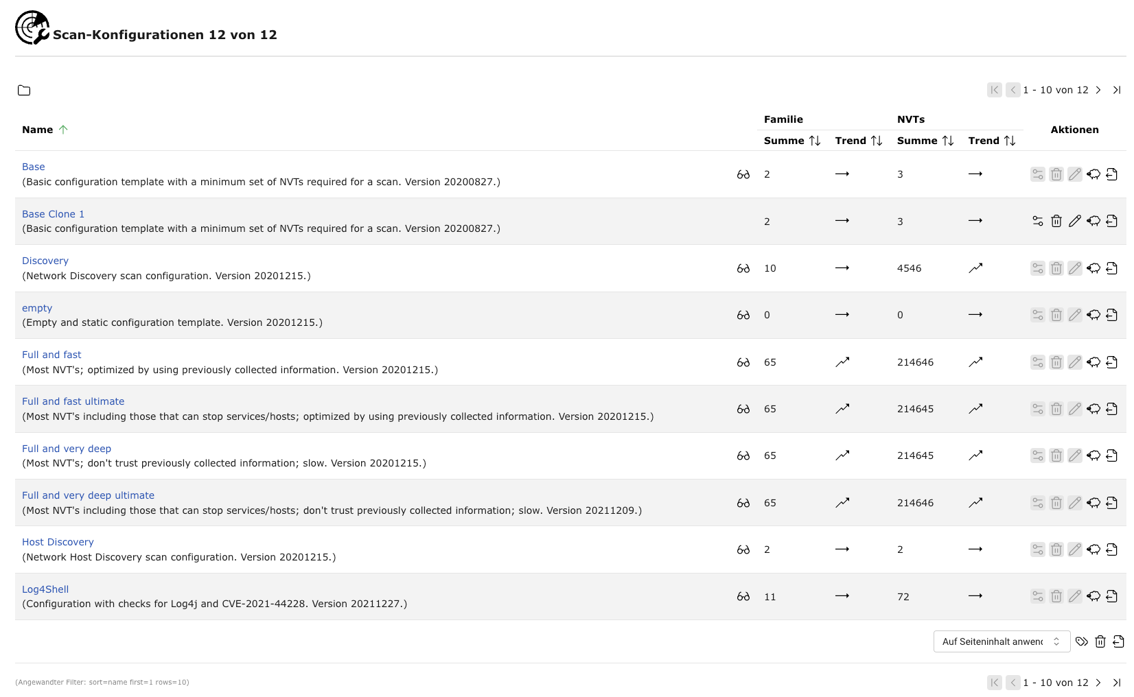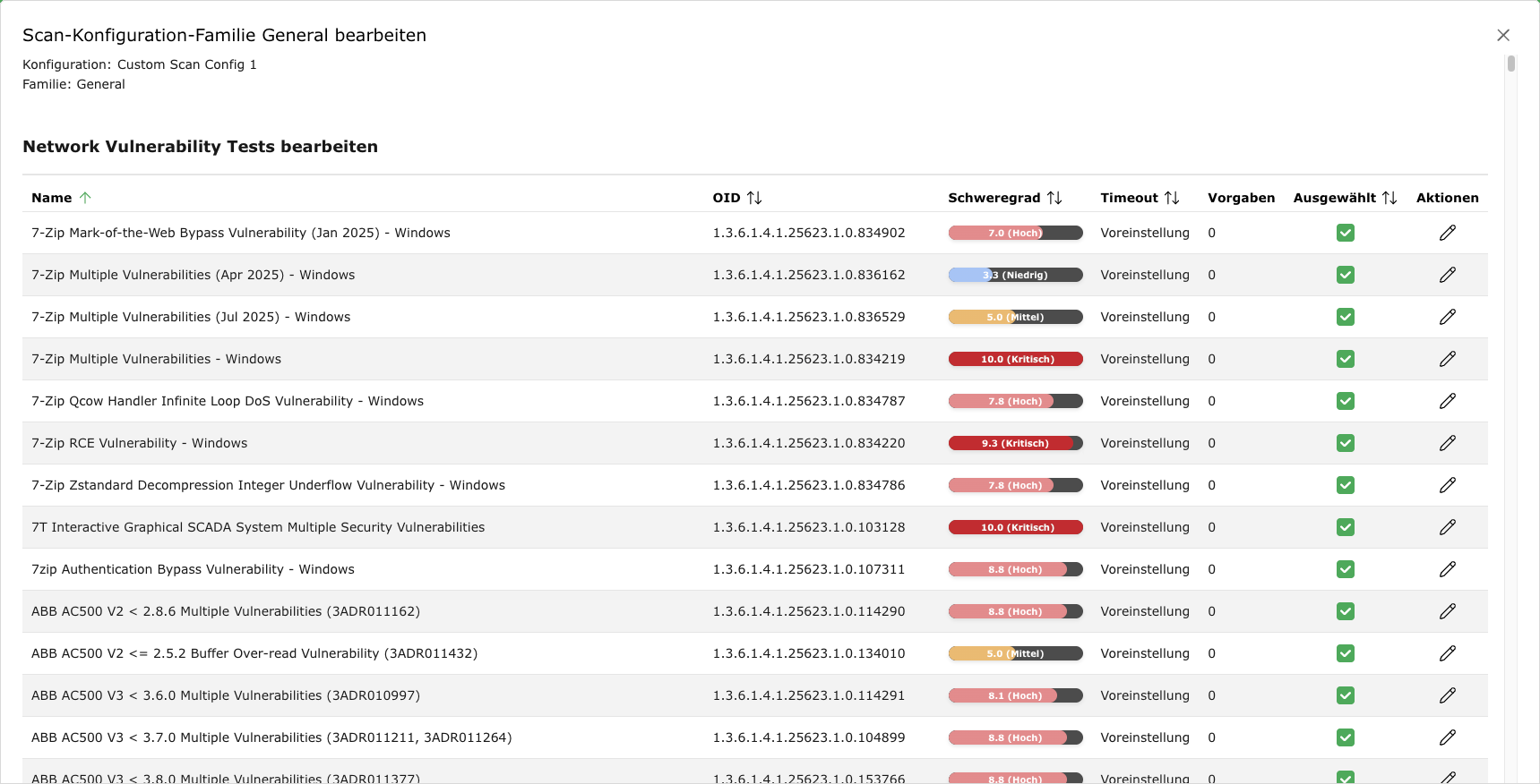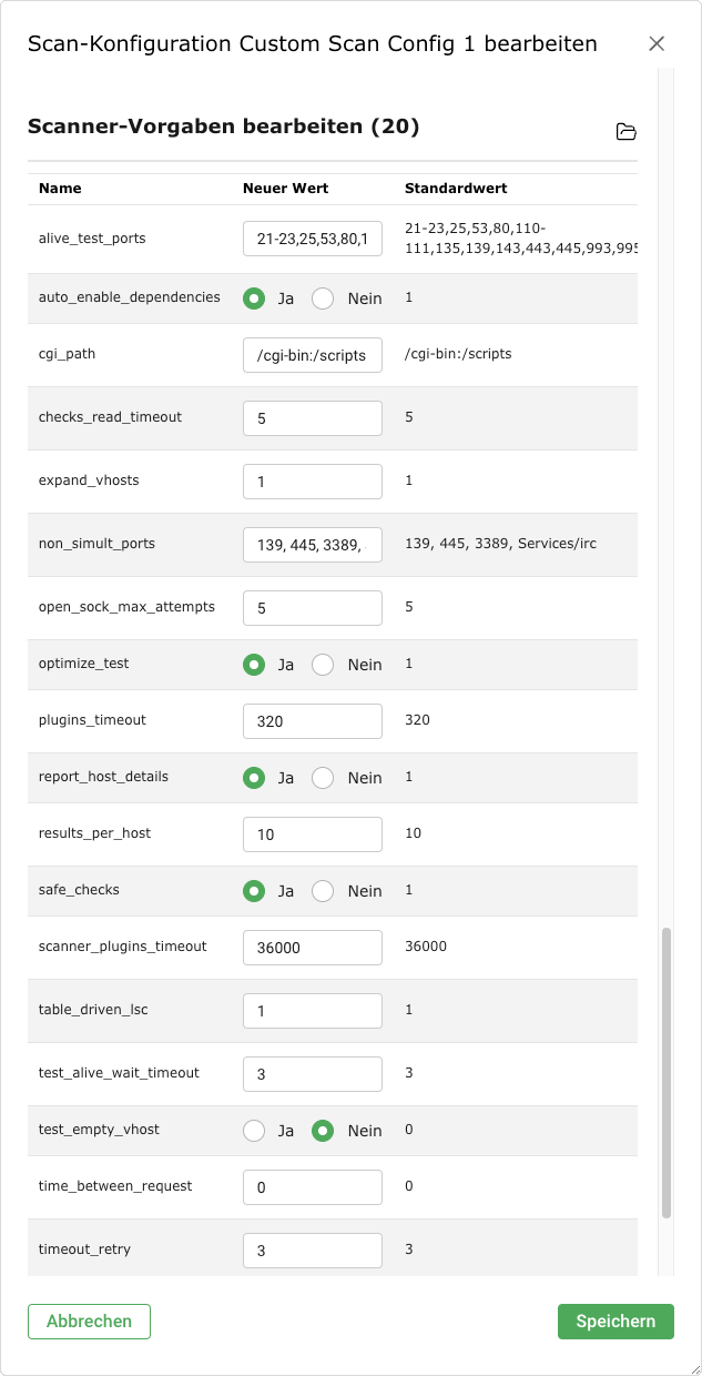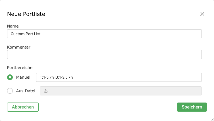 Es sollten nicht alle Ports in der Portliste standardmäßig aktiviert sein. Dies verlängert den Scan wesentlich. Die bewährte Methode ist es, die Portliste auf die Ports einzustellen, die in der Umgebung genutzt werden und von den Firewalls unterstützt werden.