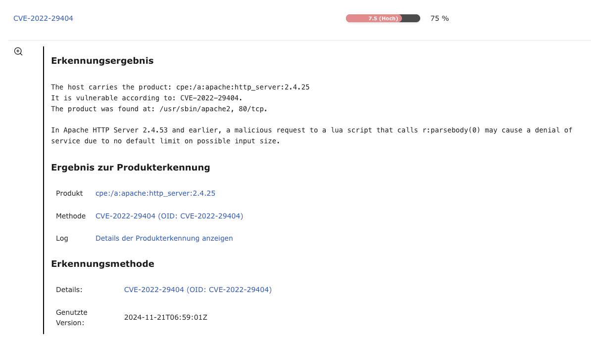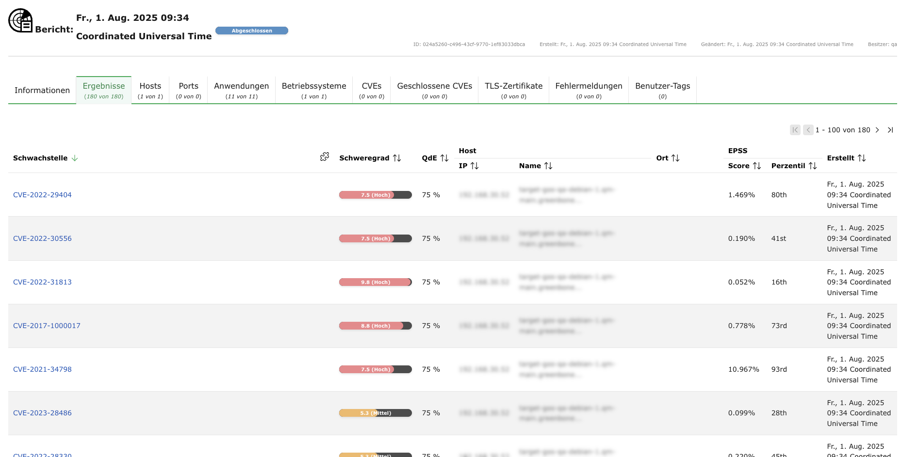 In Umgebungen mit virtuellen Hosts (vHosts) haben die Scanberichte weniger Ergebnisse, da Duplikate vermieden werden.