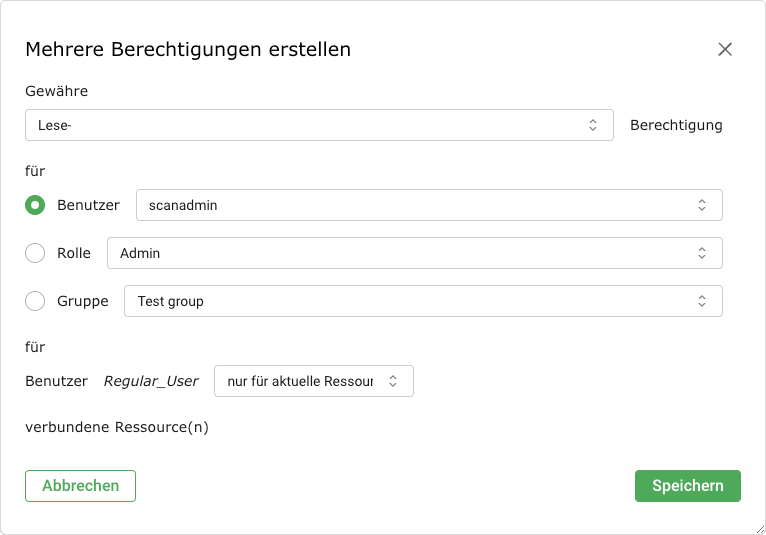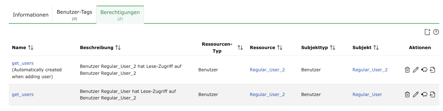 Berechtigungen des Benutzers oder anderer Benutzer/Rollen/Gruppen für Objekte des Benutzers (siehe Kapitel 8.4).