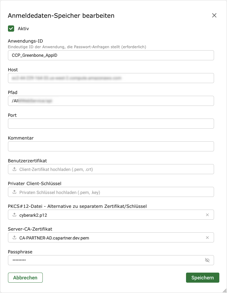 Ein CyberArk-Anmeldedaten-Speicher kann wie folgt eingerichtet werden: