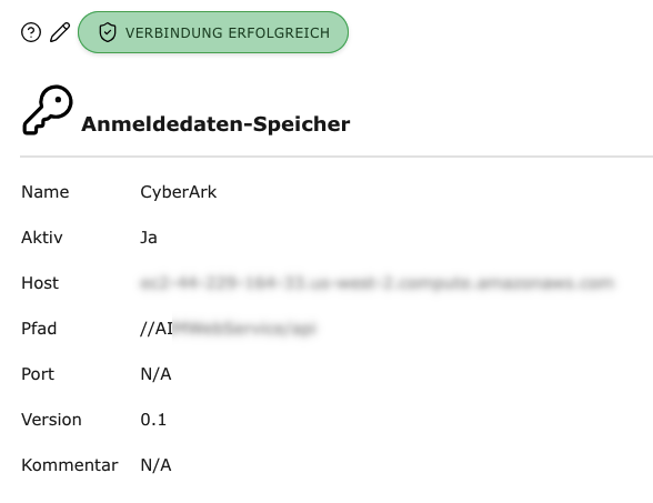 → Wenn die CyberArk-Instanz erreichbar ist, wird VERBINDUNG ERFOLGREICH angezeigt.
