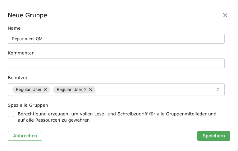 Benutzer können in Gruppen organisiert werden. Dies dient hauptsächlich der logischen Gruppierung.