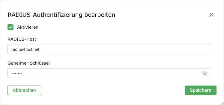 Hostnamen oder IP-Adresse des RADIUS-Servers in das Eingabefeld RADIUS-Host eingeben.