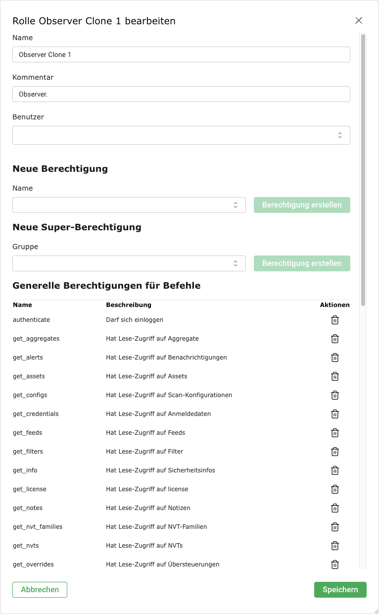 Die Durchsetzung der Rolle wird nicht in der Web-Oberfläche implementiert, sondern im zugrunde liegenden Greenbone Management Protocol (GMP) und betrifft somit alle GMP-Clients.