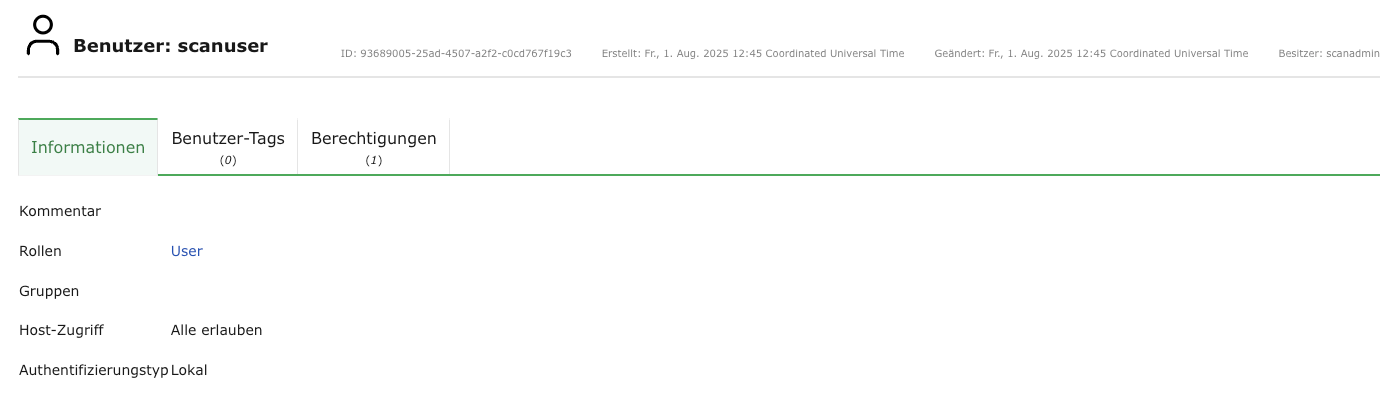 → Der Benutzer wird erstellt und auf der Seite Benutzer angezeigt.