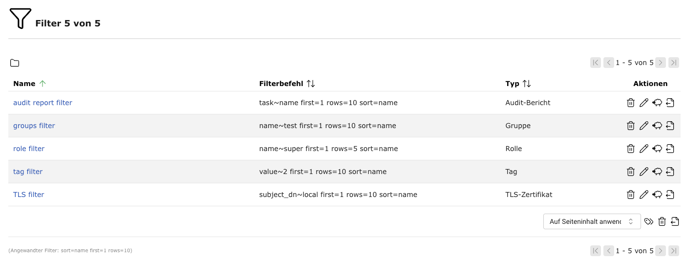 Fast jede Seite der Web-Oberfläche bietet die Möglichkeit, den angezeigten Inhalt zu filtern.