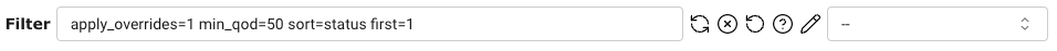 Beispiel: Filteranfragen wie name~test and rows=20 or name~def and rows=30 sind nicht erlaubt. In diesem Fall würde nur rows=30 angewendet werden.