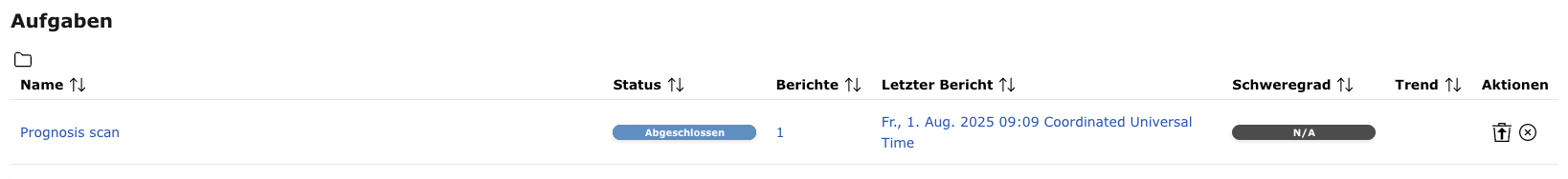 Scan-Anzeigen: Das Dashboard enthält Anzeigen, die Aufgaben, Ergebnisse und Berichte betreffen.