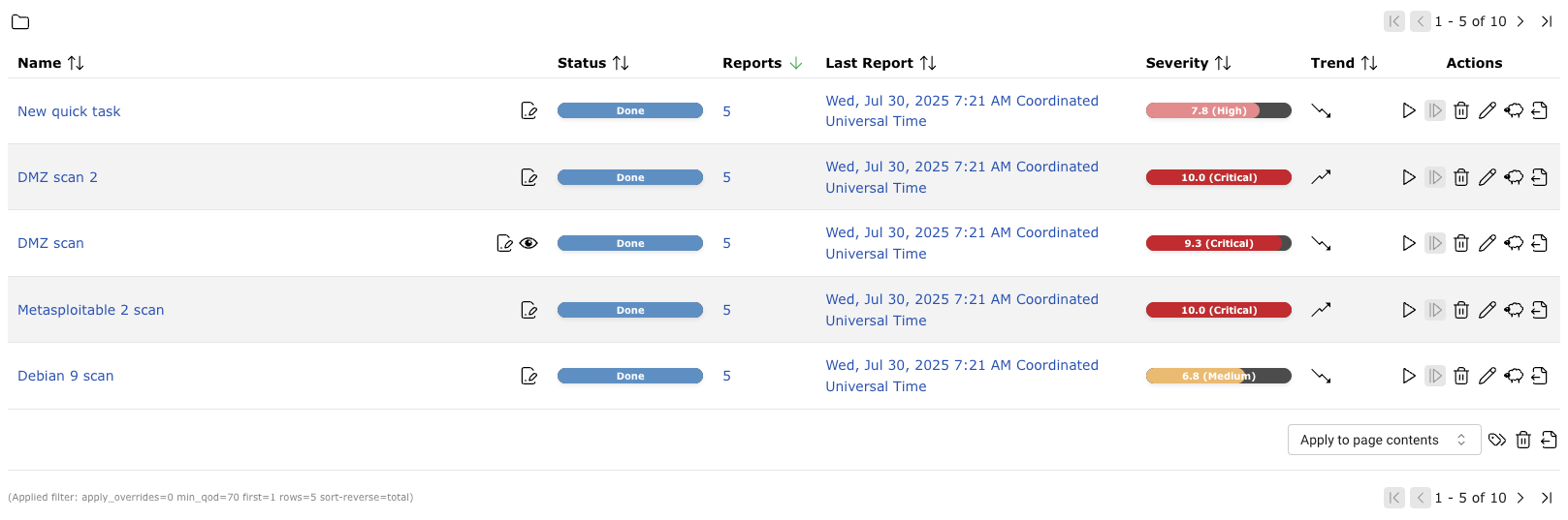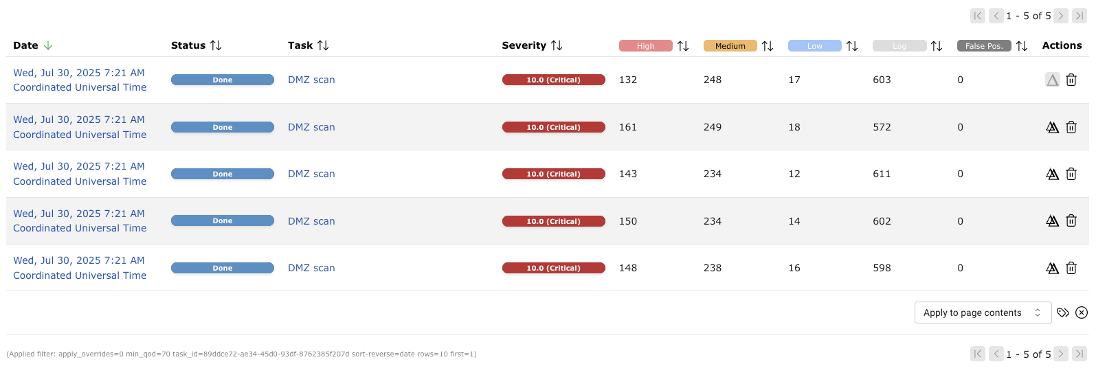 The appliance saves all reports of all scans in a local database. Not only the last report of a scan is saved but all reports of all scans ever run. This allows access to information from the past. The reports contain the discovered vulnerabilities and information of a scan.