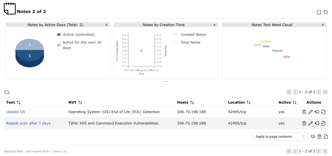 All existing notes can be displayed by selecting Scans > Notes in the menu (see Fig. 10.24).