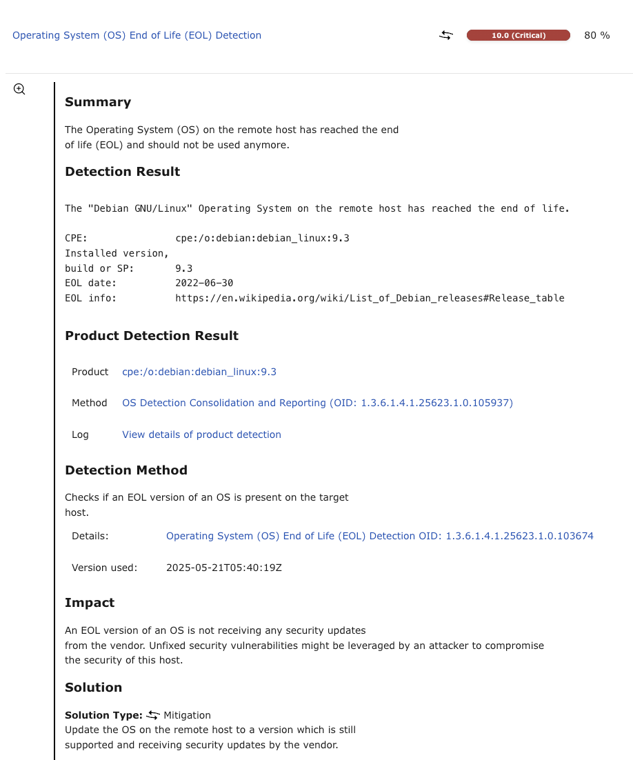This is the complete Greenbone Security Report with all vulnerabilities and results. It can be opened with a web browser in which JavaScript must be enabled. It contains dynamically sortable lists as known from the web interface. The language of the report is English.
