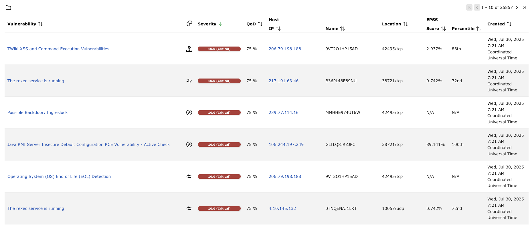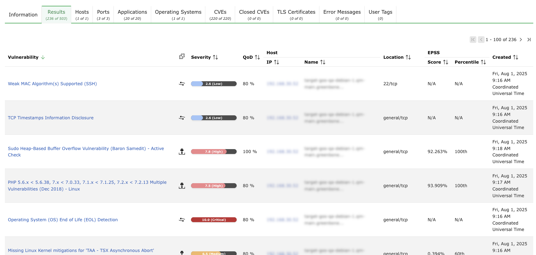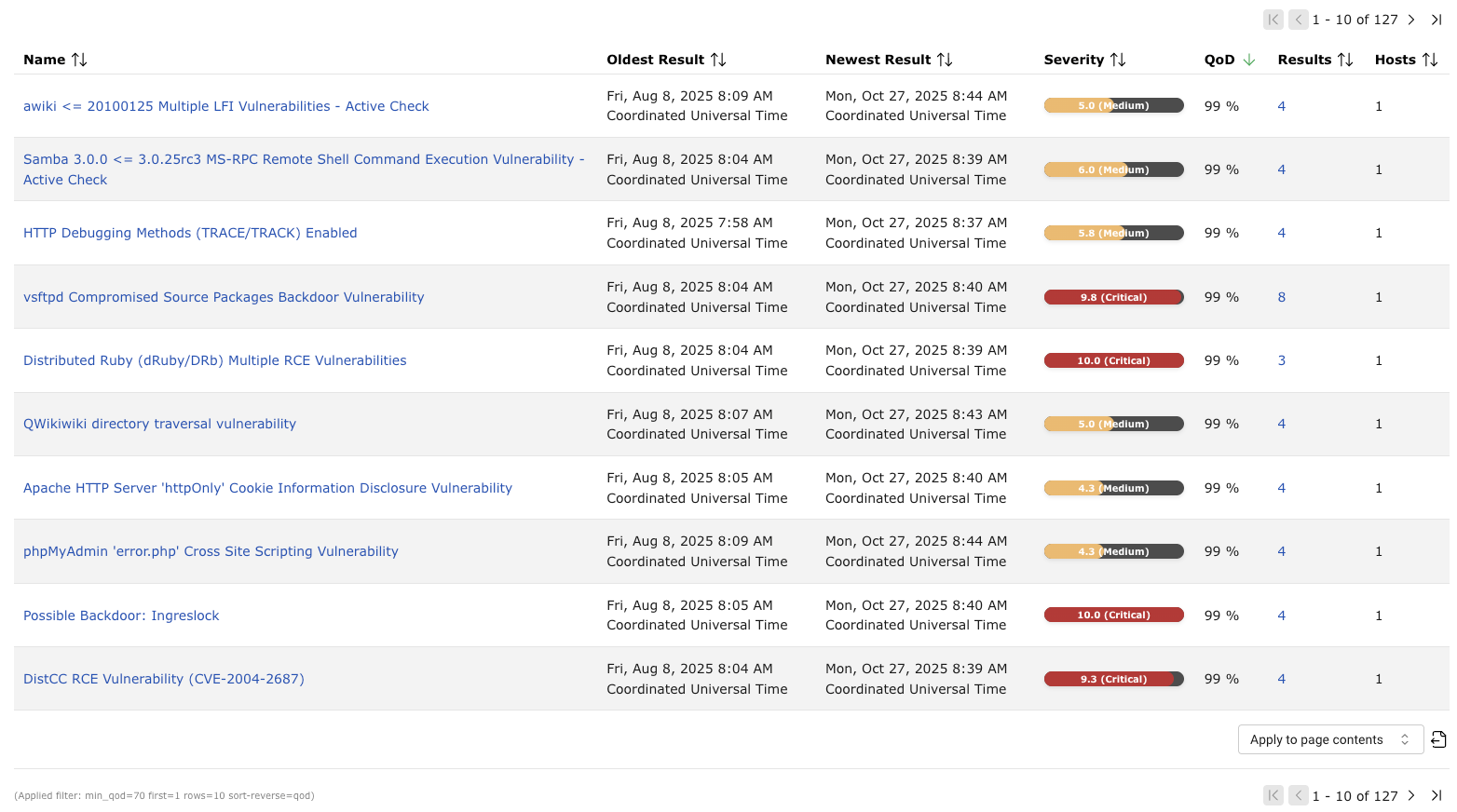 The results of a scan are summarized in a report. Reports can be displayed on the web interface and downloaded in different formats.