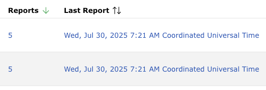 Report formats may be deprecated. They are marked with (Deprecated) on the web interface, and are no longer documented in the following list.