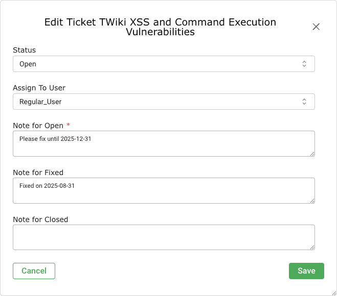 A severity class can be selected from the drop-down list. Depending on the severity class selected, the new severity is predefined: