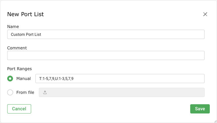 Multiple options can be mixed. If importing from a file, the same syntax can be used. Entries can be separated with commas or by line breaks. If many systems have to be scanned, using a file with the hosts is simpler than entering them manually. The file must use ASCII character encoding.