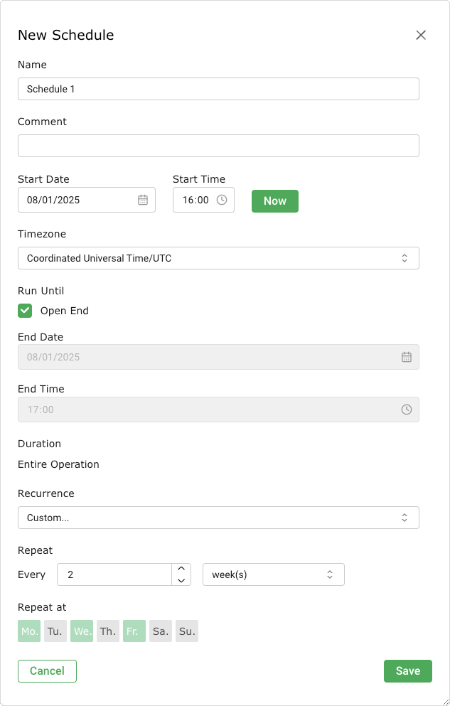 Create a schedule for the task by selecting the radio button Create Schedule (see Chapter 9.11).