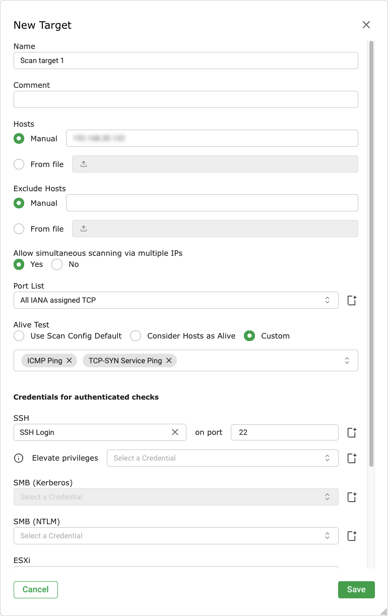 To remediate this problem, both the target configuration and the scan configuration support the setting of the alive test (see Alive Test).