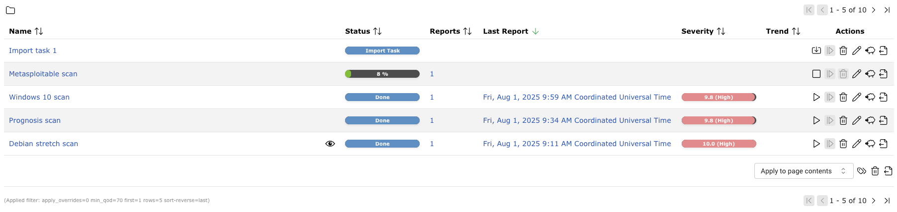 Select Scans > Tasks in the menu.