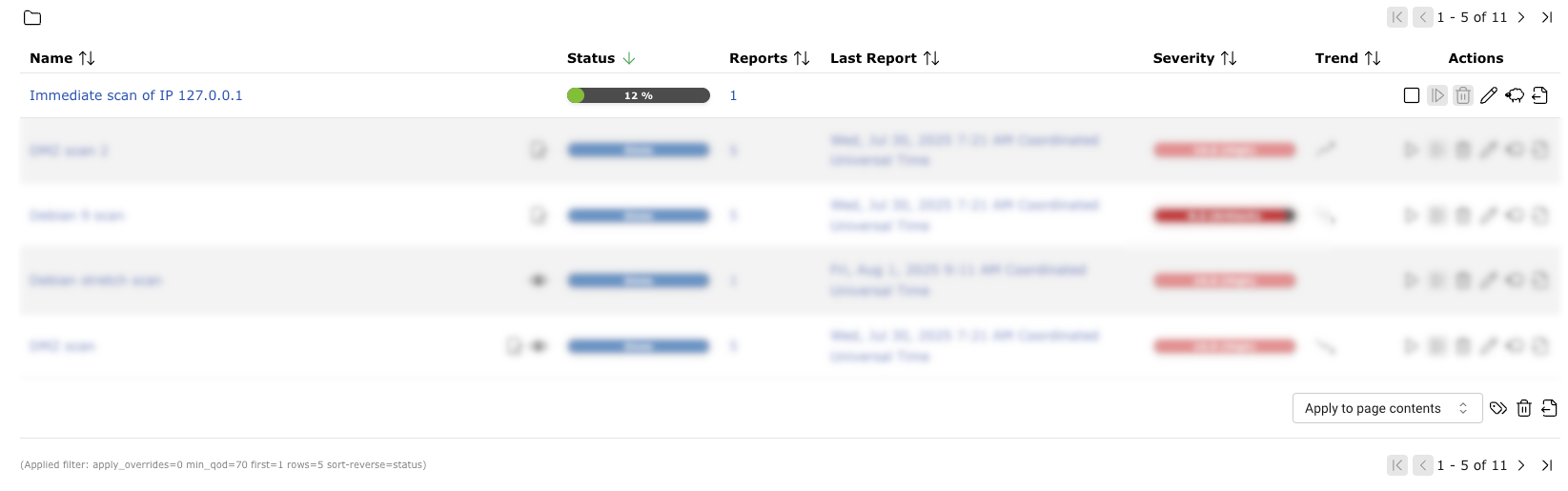The report of a task can be displayed as soon as the task has been started by clicking the bar in the column Status. For reading, managing and downloading reports see Chapter 10.