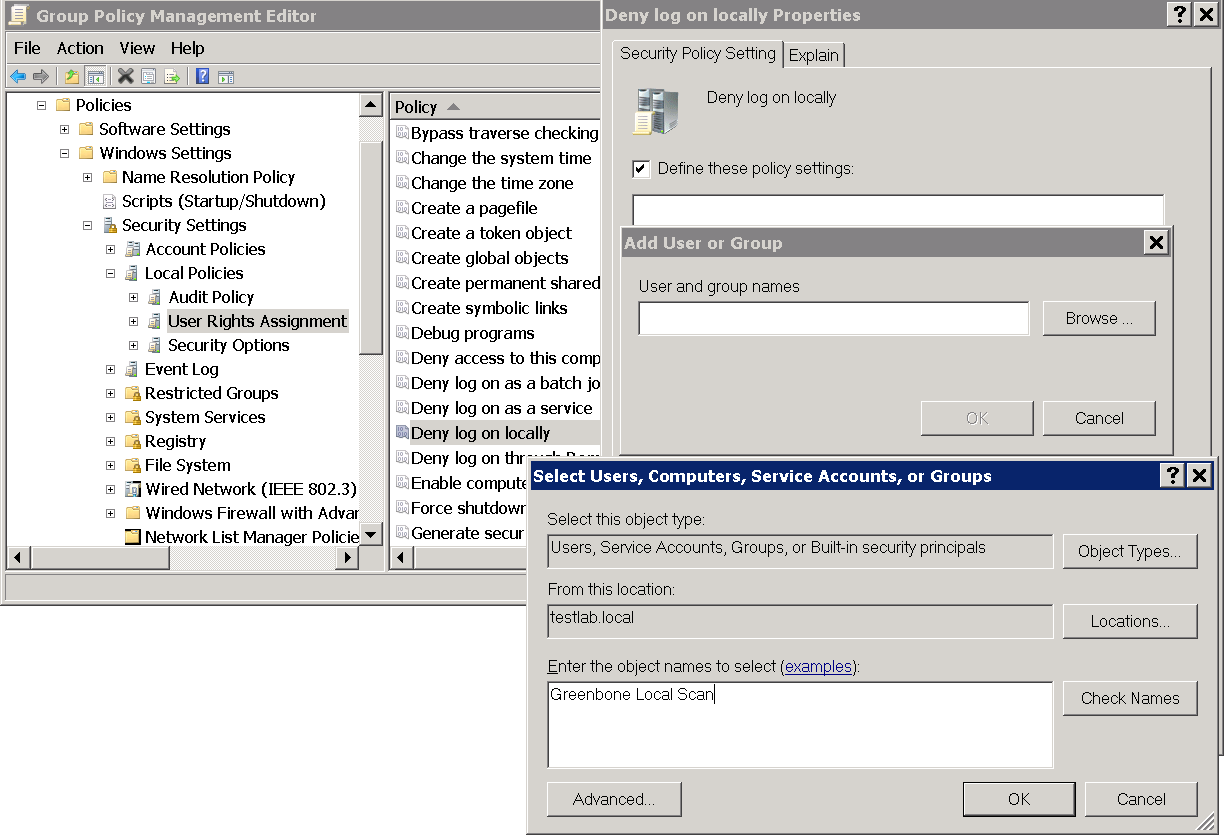 Authenticated scan using local security checks