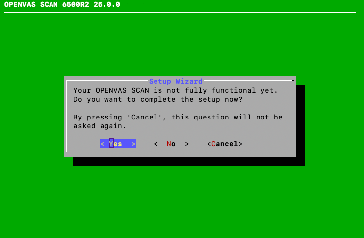 By selecting Yes and pressing Enter the first setup wizard is opened.
