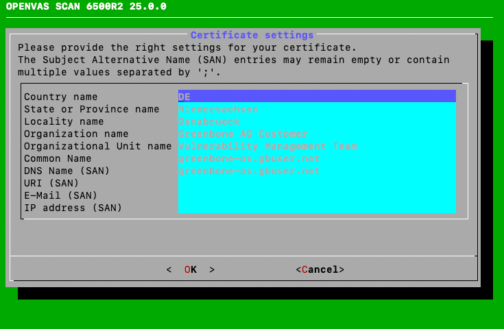When the certificate is signed, it has to be uploaded to the appliance. The upload is not done in the first setup wizard, but in the later GOS administration menu as described in Chapter 6.2.4.1.7.2, steps 1–4 and 11–14.